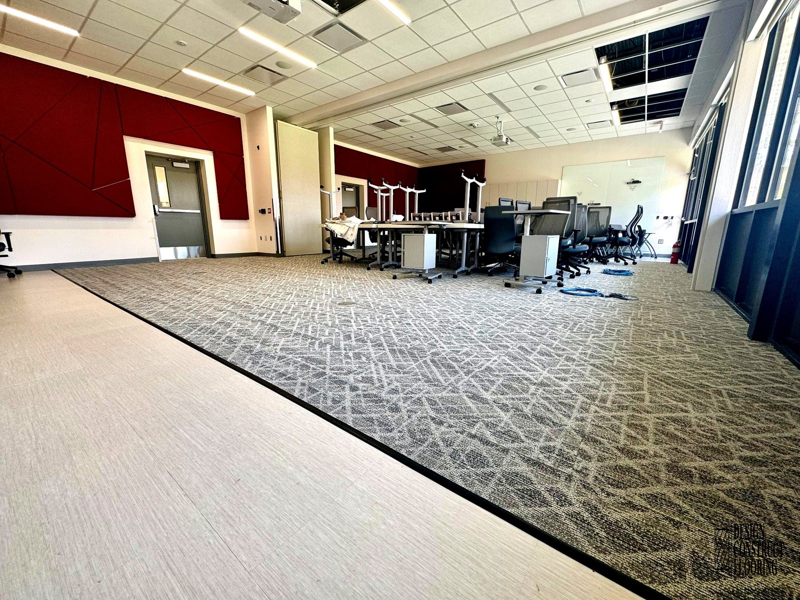 Design Construct Flooring completed an 8,000 square foot commercial flooring renovation at the W.R. Banks Building, part of Texas Southern University (TSU) in Houston, Texas. The project supported the Child Development Laboratory and included the installation of carpet tile, luxury vinyl plank (LVP), and ceramic tile flooring across classrooms, corridors, offices, and shared learning spaces. The renovation required precise coordination with campus operations to ensure minimal disruption to ongoing university programs. DC Flooring’s installation team managed logistics, material handling, and safety compliance within a fully active campus environment, completing work within the university’s construction schedule. Each flooring system was selected for both performance and aesthetics. Carpet tile was installed in office and classroom areas to improve acoustic comfort and visual warmth. Luxury vinyl plank was chosen for multipurpose rooms and corridors due to its durability and ease of maintenance, while porcelain and ceramic tile were used in labs and restrooms for moisture resistance and longevity. Together, these materials created a cohesive design that balanced functionality with modern appeal. The completed installation provided Texas Southern University with a long-lasting, low-maintenance flooring system tailored to the needs of an education facility. This project demonstrates Design Construct Flooring’s ability to deliver large-scale institutional flooring installations with precision, efficiency, and attention to detail—reinforcing our reputation as a trusted partner for academic and public projects across Texas.