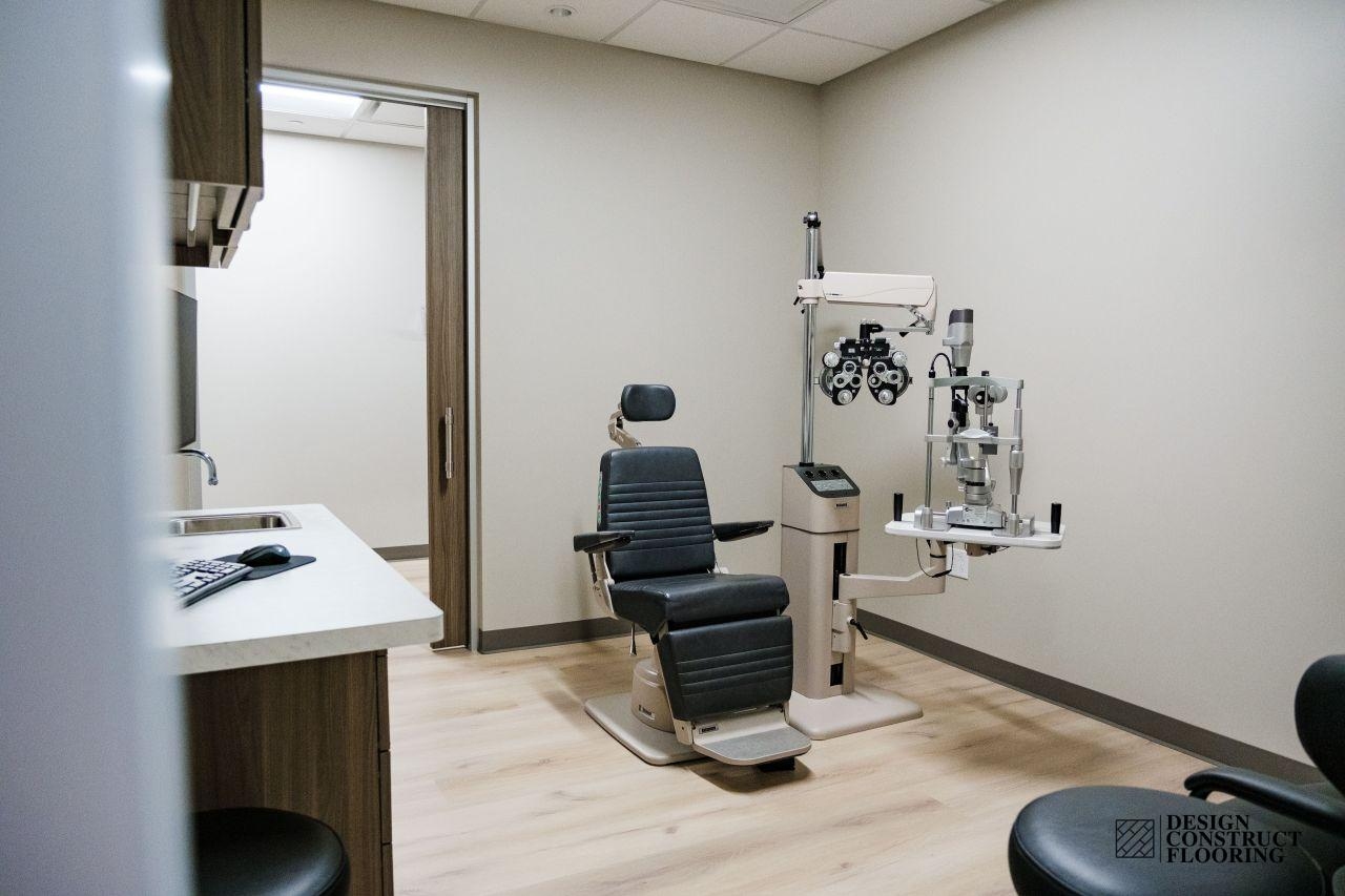 Design Construct Flooring completed a comprehensive healthcare flooring installation for the Whitsett Vision Group Medical Office Building (MOB) in Houston, Texas. The project included the installation of luxury vinyl plank (LVP), sheet vinyl, and carpet tile throughout patient areas, exam rooms, offices, and shared corridors, creating a modern and professional medical environment. The flooring design prioritized both functionality and patient comfort. In waiting rooms and lobbies, vinyl plank flooring was installed to deliver a warm, welcoming aesthetic that complements the facility’s interior design while withstanding heavy foot traffic. In clinical and laboratory areas, seamless sheet vinyl flooring provided a hygienic, easy-to-clean surface that supports infection control and long-term durability. Carpet tile was used in administrative offices and consultation rooms to reduce noise and add visual warmth for staff and patients. Each flooring system was installed using healthcare-grade adhesives and low-VOC materials, ensuring compliance with safety standards and contributing to better indoor air quality. Design Construct Flooring coordinated closely with the general contractor and medical staff to meet the project schedule and maintain operational cleanliness throughout construction. The finished result reflects a balanced blend of design, durability, and clinical performance—tailored specifically for the needs of a modern medical practice. This project highlights DC Flooring’s expertise in healthcare and commercial flooring installations across Texas, delivering reliable, low-maintenance solutions that enhance both aesthetics and functionality in medical environments.